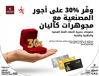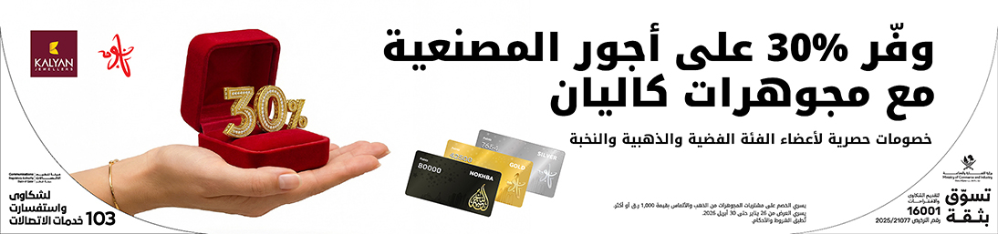 لفترة محدودة، يحصل أعضاء الفئات الفضية والذهبية والنخبة في نجوم على خصم 30% على المصنعية عند شراء المجوهرات الذهبية والألماسية من مجوهرات كاليان، إحدى أكثر العلامات التجارية الموثوقة في قطر.