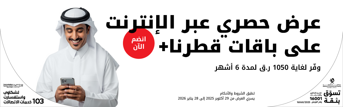 - يمكن للعملاء الجدد الذين يشتركون في إحدى باقات Qatarna+ الحصول على رقم مميز مجاناً أو على خصم.