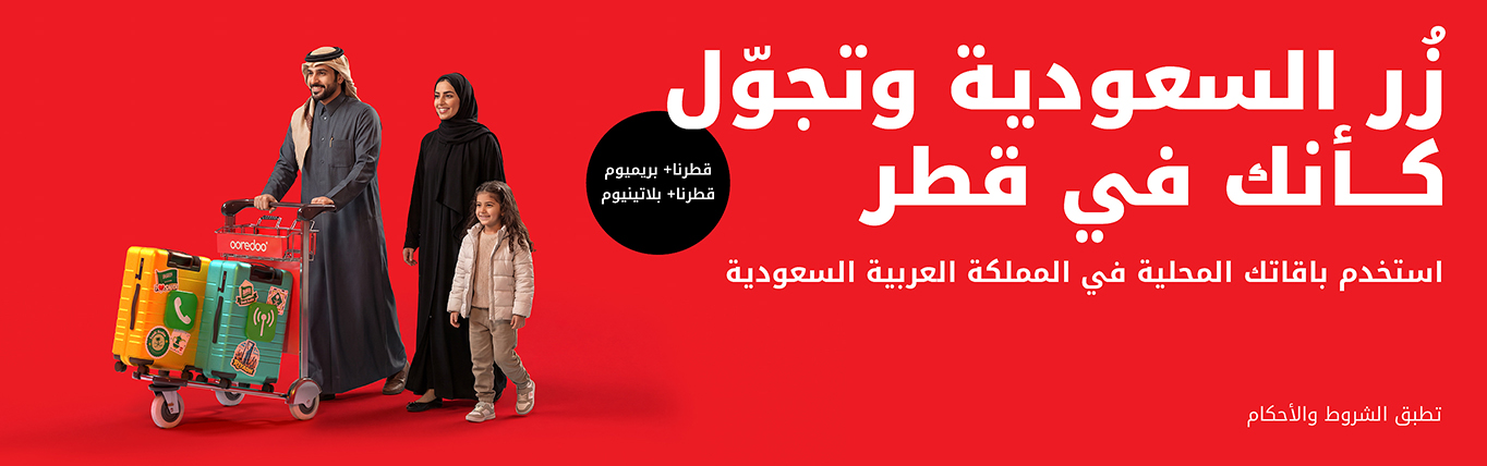 | غير محدودة في قطر ودول مجلس التعاون الخليجي و30 دولة أخرى | 200 غيغابايت + 500 دقيقة ورسالة نصية | ما يصل إلى 2500 دقيقة ورسالة نصية | 1 شريحة متعددة محلية مجاناً 1 شريحة eSIM لساعة Apple مجاناً |