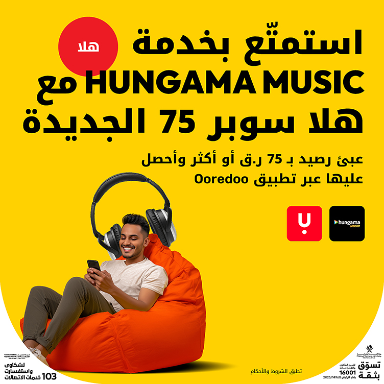 - تطبيق Hungama Music متاح لجميع عملاء هلا عند التعبئة ببطاقة هلا سوبر 75 أو أكثر.