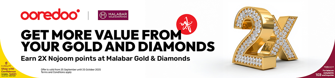 Customers in Qatar deserve to feel rewarded when making premium purchases. That’s why Nojoom, in partnership with Malabar Gold & Diamonds, is offering a special opportunity for our valued members to earn DOUBLE Nojoom Points on gold and diamond jewellery purchases for a limited time.