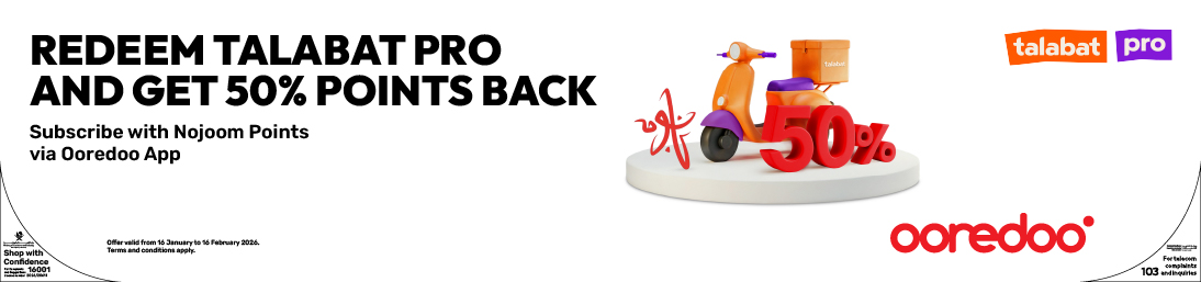 Even while staying home, you can still have the world at your doorstep—thanks to Ooredoo. We’re thrilled to announce that talabat is now a Nojoom redemption partner!