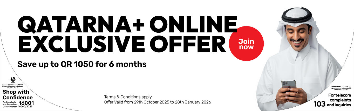 - All customers using Qatarna+ plans are also eligible for additional entertainment benefits to choose from available options: