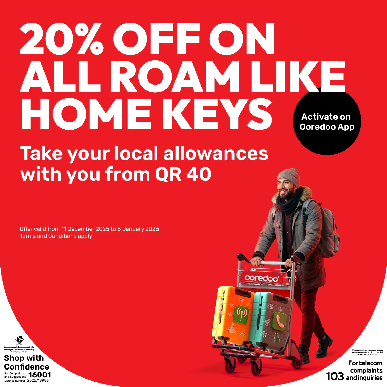 This winter, enjoy 50% extra promotional data on all Ooredoo Passport subscriptions and a 20% discount for All Roam Like Home Key options.