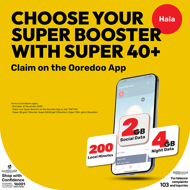 Stay connected and enjoy more with every recharge of QR 40 and above. With Hala Super Boosters, you’ll now get Bonus Offers at no extra cost, giving you more value every time.