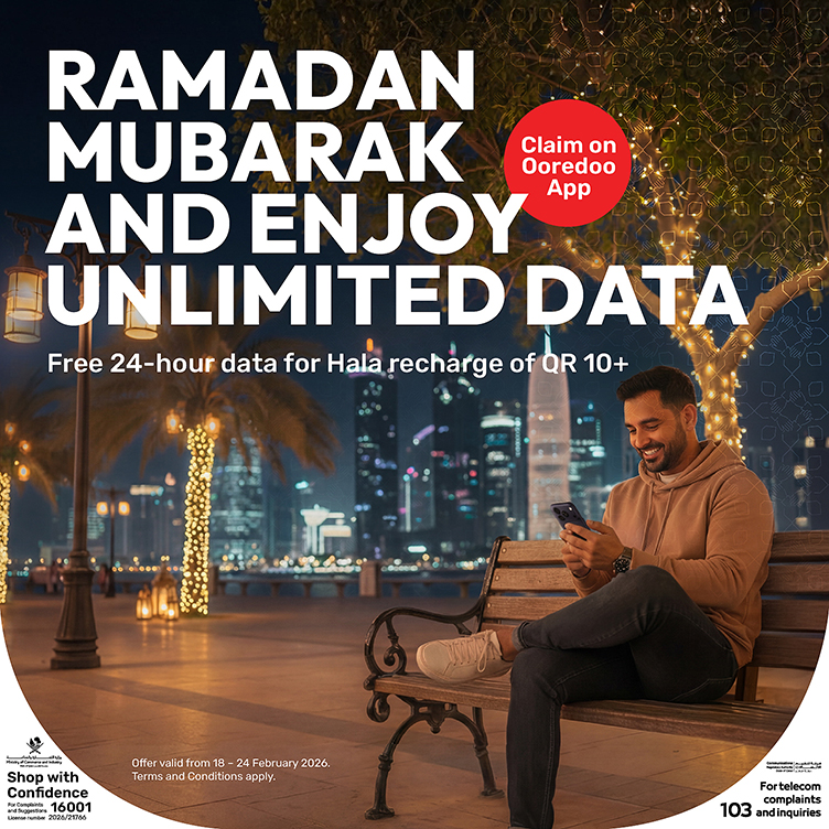 This special Ramadan offer is available for a limited time, so be sure to claim your unlimited data early through the Ooredoo App.